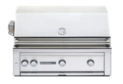 This Sedona Grill is manufactures by Lynx Professional in California. This is a 36″ Grill that features 3 Stainless U Burners with 23,000 BTU’s per burner. This grill is super hot.. Literally. It also has a Infrared Rotisserie Back-burner for yummy chickens and roasts.